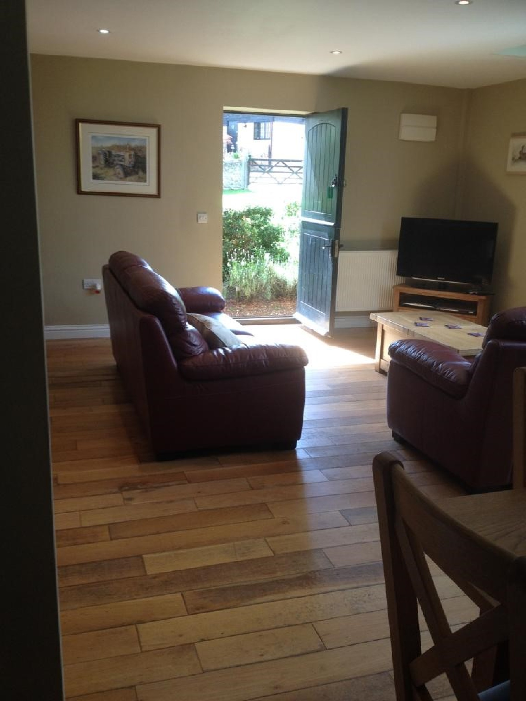The cottage is open plan and has a well equipped kitchen with dishwasher, washer/dryer, ironing facilities, leather sofas, dining table and chairs, television, full optic fiber internet access (WIFI), bathroom with bath & shower, hair dryer, and downstairs cloakroom.