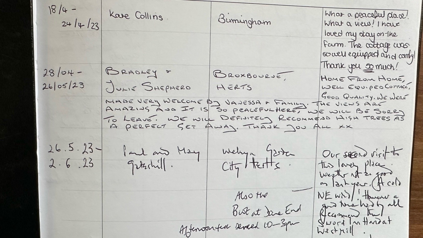 Some of the wonderful feedback our guests have left us over the years.